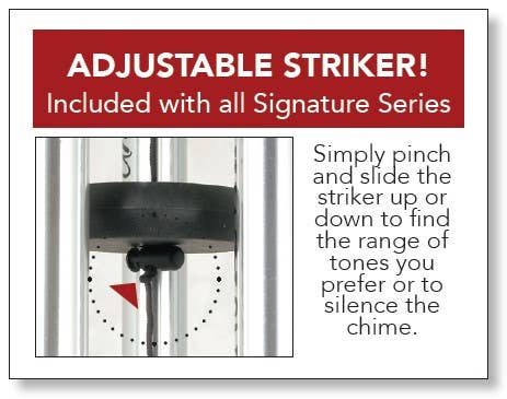 Our 21" Picturesque Sonnet Chimes feature powder coated aluminum construction and UV printed tubes with industrial cord. 4 heavy walled tubes that emit gentle tones that are pleasing to the ear. 3/4" Diameter Tubes – Adjustable Striker