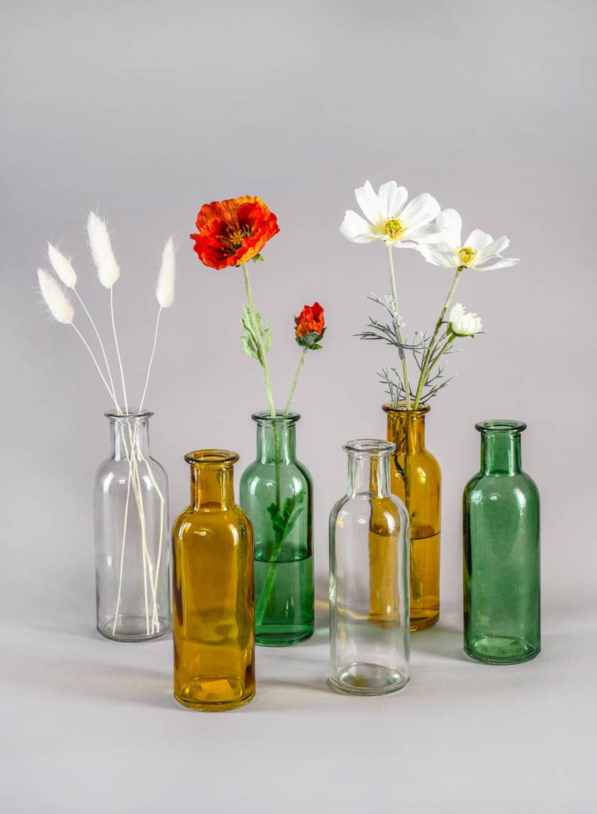 Our clear glass bud vases provide a pretty base to show off your single stems. Use it at your reception tables during your wedding, or use it at the office to brighten up your workspace. You can even gather a few flowers together to create a small centerpiece. Whether joined together or displayed individually, these glass bud vases will be stunning in any space. We also have these vases in other colors so you can mix them up for a dramatic finish. These bud vases are 6 1/2-inch tall by 2 1/8-inch in diameter and have a 1 3/8-inch opening at the top.