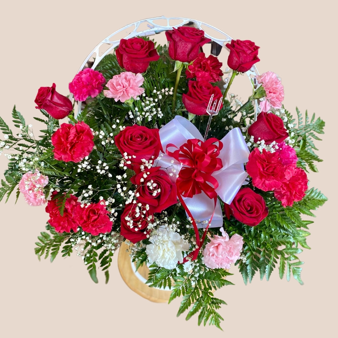 Honor a loved with a classic floral sympathy basket. Hand-arranged by our designers. Available for local delivery or available for pickup.