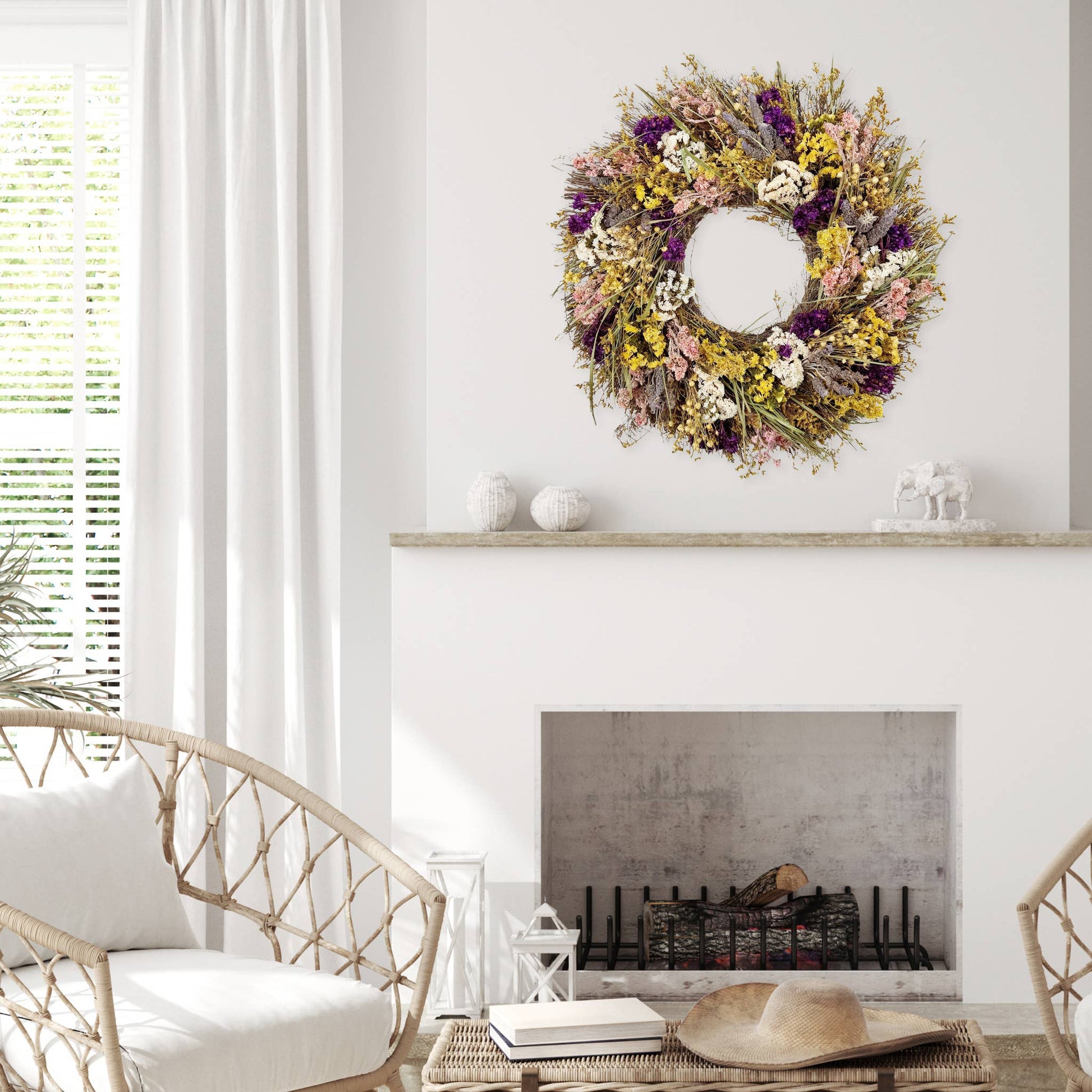 Using multiple types of delicate dried flowers and grains, we made this delightful Sunshine Wreath that fits perfectly with any decor.